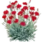 Small evergreen with vibrant pinkish-red blooms with dark red centers in late spring.