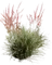 Abundant pink flowers spikes rise above gray-green blades from early summer through fall with fewer seeds than the species. Tolerant of heat, reflected light and drought once established. Attracts hummingbirds.
